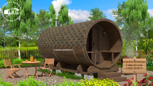 Баня-бочка - идеальный вариант для тех, кому нужна не просто банька, а что-то действительно необычное в плане дизайна. Это решение из разряда норы хоббита из вселенной известного писателя Д.Р.Р.Толкиена. И если строительство норы хоббита в нашей полосе невозможно из-за климатических особенностей, то баню-бочку можно смело строить на любом дачном участке.
