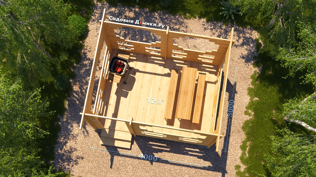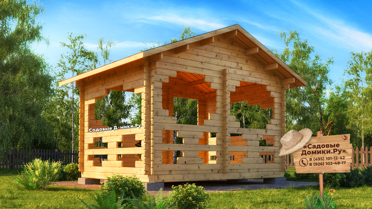 «Лучик» - это нестандартное решение для беседки вполне классических размеров 4х3. Ее главными отличиями являются выраженный дверной проем и необычный дизайн окон. Все эти особенности создают своеобразный уют и гармонию. Ведь, с фронтальной стороны беседка кажется закрытой, а с боковых сторон - практически полностью открытой. Этот проект очень часто заказывают! Цена - 200 000 рублей.