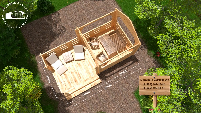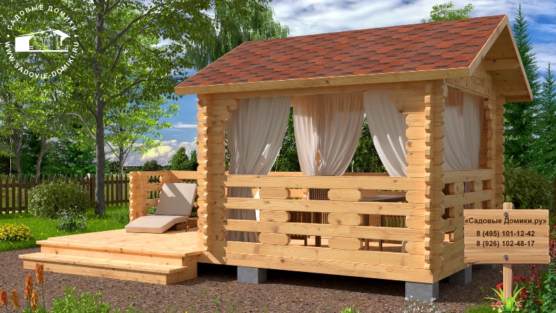 «Штиль» - это дачная беседка 6 на 3 метра из профилированного бруса. По сути она состоит из 2 частей: беседки «Огонек» и веранды. Этот проект любят за то, что в нем есть закрытая и открытая части. Основное помещение спрячет Вас от непогоды, а площадку можно использовать под барбекю, мангал или танцы! :-)