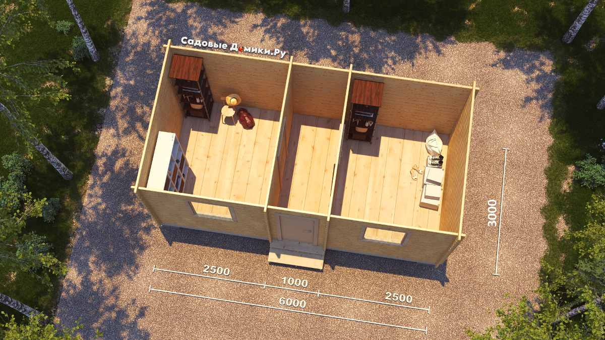 «Строитель» - проект двухкомнатного хозблока 6 на 3 метра с небольшим тамбуром по центру. Этот домик будет верным помощником на время строительства основного дома. Многие его также используют в качестве летней кухни, кладовки или спальни. Чаще всего в одной комнате обустраивается помещение под садовый инструмент или хранение вещей, строительных материалов, а в другой комнате можно разместить кухню или спальню.