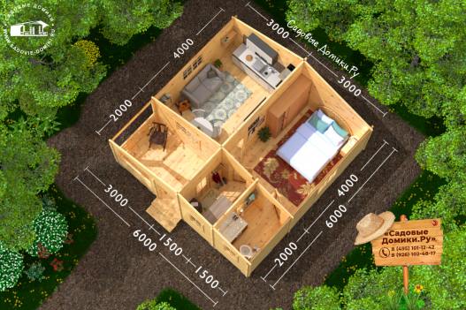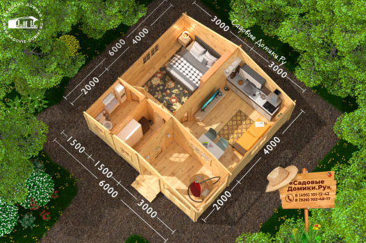 «Фермер» - это проект садового домика 6 на 6 метра с 4 комнатами и небольшим крыльцом. С таким домом на даче можно не только отдыхать, но и жить постоянно. Планировка позволяет разместить там и летнюю кухню, и гостевую, и спальню, и санузел. Также рекомендуем посмотреть похожий проект «Жаркое лето».