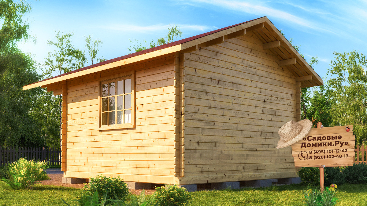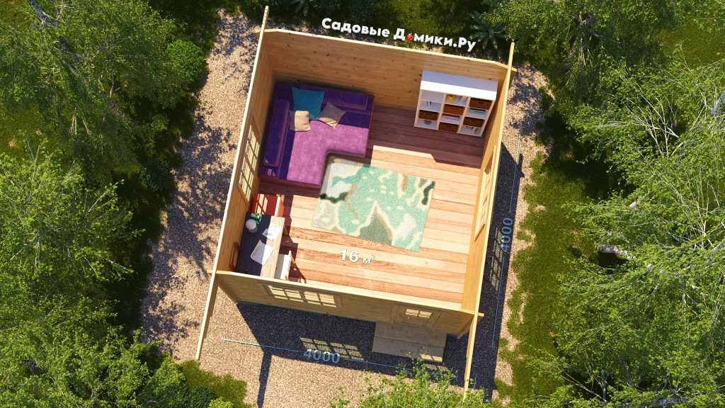 «Солнышко» - это проект одноэтажного дачного домика 4 на 4 метра. Для него характерна простая планировка, представленная единственной комнатой. Если потребуется, ее можно разделить перегородкой на 2 части. Вход и дверь защищены козырьком от осадков. По желанию Заказчика стандартную планировку можно менять!