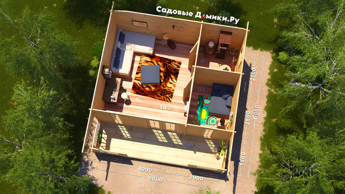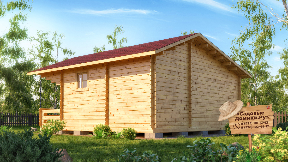 Садовый домик 6х6 с верандой обеспечит Вас необходимым пространством для отдыха и ночлега. В нем Вы можете не только проводить время или прятаться от непогоды, но и хранить инвентарь. Чистовая площадь жилого помещения чуть больше 24 м2, остальные 9 м2 приходятся на крыльцо с верандой. Этот проект - настоящий хит продаж!