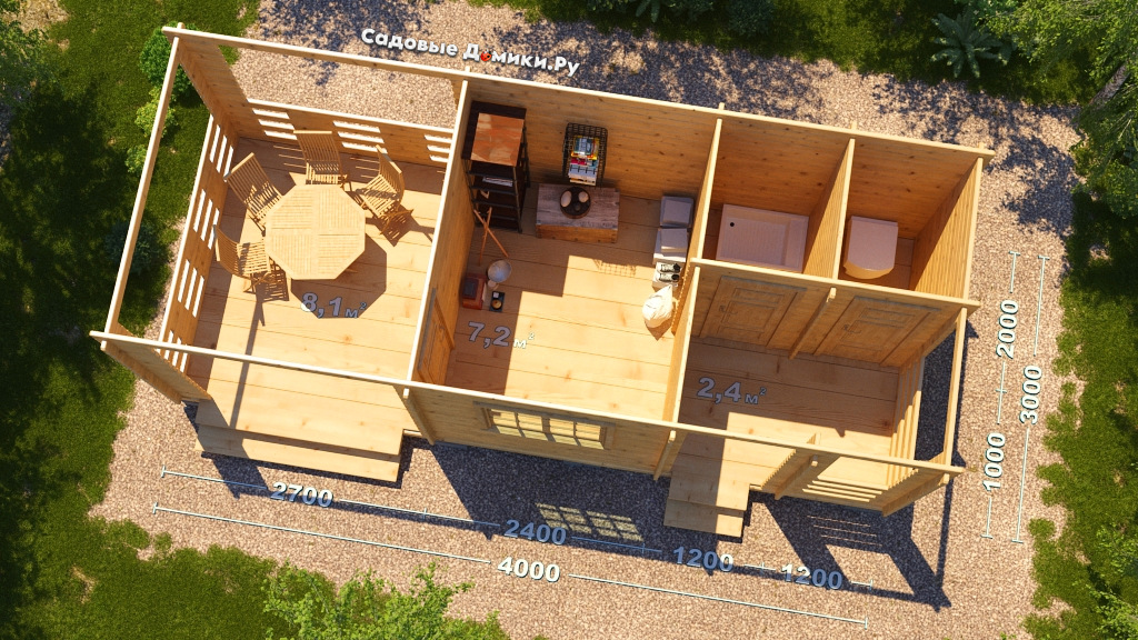 «Квартет» - это проект многофункционального хозблока 7,5 на 3 метра. По сути это хозяйственный блок с беседкой или просторной верандой. Планировкой предусмотрены 4 помещения: терраса, жилая комната, душ, туалет. Стоимость под ключ - 530 000 рублей. Бесплатная сборка за 1 день!