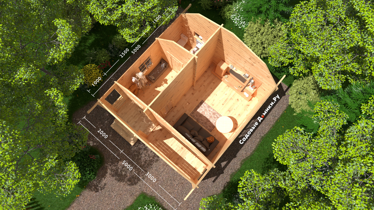«Садовник Плюс» - это увеличенная и доработанная версия проекта «Садовник». В нем добавилось помещение под санузел, а площадь комнат стала больше. Мы специально изменили планировку так, чтобы домик стал максимально комфортным. Помимо прихожей, санузла и просторной гостиной у него есть красивая веранда под кровлей.