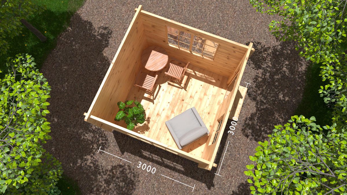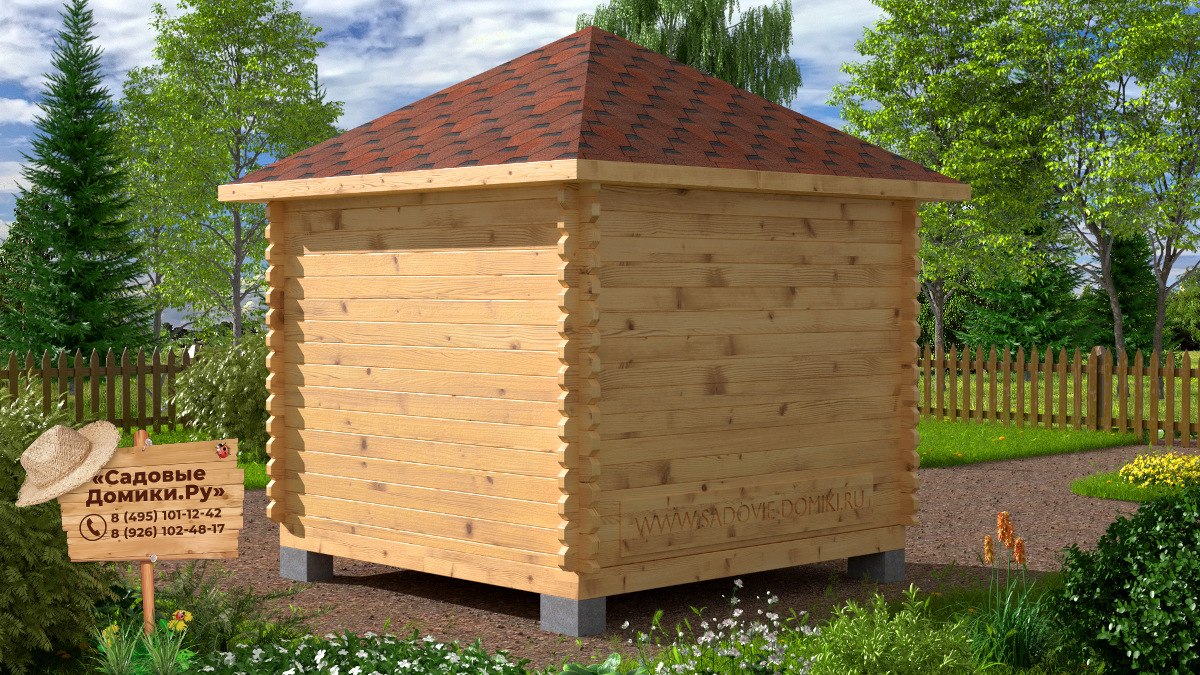 «Ягодка» - это проект закрытой беседки 3 на 3 метра. По сути это маленький садовый домик, который можно использовать и как летнюю кухню, и как хозблок, и как небольшую комнату отдыха, и как беседку. По вашему желанию можно менять расположение окон и двери без увеличения стоимости. А если заменить вальмовую 4-скатную кровлю на классическую 2-скатную, то будет дешевле на 30.000 рублей.